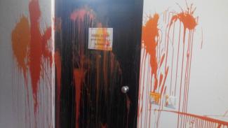 Οι δράστες πέταξαν μπογιές στους τοίχους, τις πόρτες και το πάτωμα και πέταξαν φυλλάδια με συνθήματα που εκφράζουν το χώρο της εξωκοινοβουλευτικής αριστεράς και καταφέρονται εναντίον του κράτους και της κυβέρνησης.