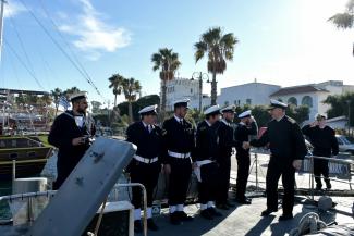 Κατά τη διάρκεια της επίσκεψης ο Αρχηγός ΓΕΝ συνοδευόταν από τον Αρχηγό Στόλου Αντιναύαρχο Κωνσταντίνο Καραγεώργη ΠΝ και τον Διοικητή Σχολής Εθνικής Άμυνας Αντιναύαρχο Νικόλαο Τσούνη ΠΝ.