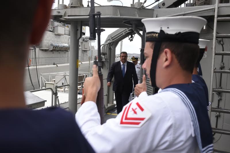 Υπουργός Εθνικής Άμυνας Πάνος Καμμένος, συνοδευόμενος από τον Αρχηγό ΓΕΝ Αντιναύαρχο Ευάγγελο Αποστολάκη ΠΝ, επισκέφθηκε σήμερα Δευτέρα 22 Ιουνίου 2015 το Αρχηγείο Στόλου, πολεμικά πλοία καθώς και τις ναυπηγοεπισκευαστικές εγκαταστάσεις του Ναυστάθμου Σαλαμίνας.