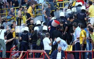 Οι δυνάμεις των ΜΑΤ έκαναν χρήση χημικών, την ώρα που ακόμη και μικρά παιδιά προσπαθούσαν να φυγαδευτούν με τους γονείς τους μέσα από τα δημοσιογραφικά θεωρεία. Ο Αλέξης Κούγιας ήρθε στα χέρια με αστυνομικούς οι οποίοι τον κατέβασαν από την εξέδρα.
