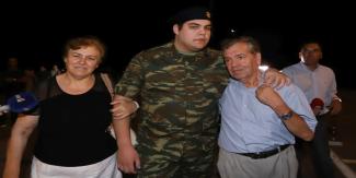 Τα ξημερώματα της 15ης Αυγούστου, με το πρωθυπουργικό αεροσκάφος και συνοδευόμενοι από το αναπληρωτή υπουργό Εξωτερικών Γιώργο Κατρούγκαλο και τον υπαρχηγό ΓΕΣ, έφτασαν στο αεροδρόμιο της Θεσσαλονίκης. Εκεί τους υποδέχθηκαν ο υπουργός Εθνικής Άμυνας Πάνος Καμμένος, ο υφυπουργός Εξωτερικών Γιάννης Αμανατίδης, ο αρχηγός ΓΕΣ Αλκιβιάδης Στεφανής, αλλά πάνω απ’ όλα οι γονείς τους. Ο Νίκος και η Σοφία Κούκλατζη έσφιξαν στην αγκαλιά το παλικάρι τους, έκλαψαν από χαρά και ικανοποίηση που αυτή η φοβερή περιπέτεια και δοκιμασία έλαβε τέλος.