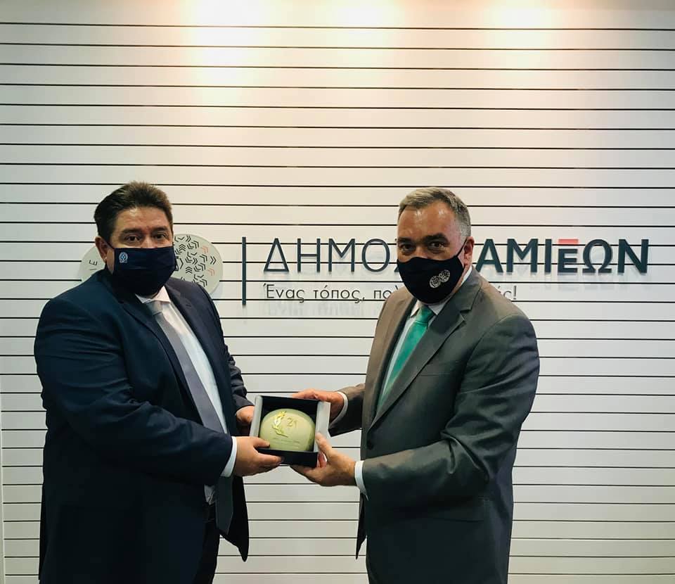 Το Δήμαρχο Λαμιέων Ευθύμιο Καραΐσκο επισκέφθηκε στο Δημαρχείο ο Αρχηγός της Ελληνικής Αστυνομίας Αντιστράτηγος Μιχαήλ Καραμαλάκης, στο πλαίσιο της παρουσίας του στην πόλη της Λαμίας το Σάββατο 10 Ιουλίου.