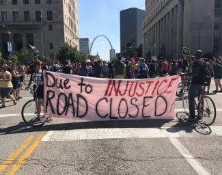 Αφού έγινε γνωστή η απόφαση, περίπου 600 διαδηλωτές πραγματοποίησαν πορεία από το δικαστήριο προς το κέντρο του Σεντ Λιούις φωνάζοντας "No justice, no peace" ("Όχι δικαιοσύνη, όχι ειρήνη") και ("Hey hey! Ho ho! These killer cops have got to go!) ("Αυτοί οι φονιάδες αστυνομικοί πρέπει να φύγουν!") Ορισμένοι κρατούσαν εμβλήματα του κινήματος "Black Lives Matter" (Οι ζωές των μαύρων μετρούν).