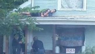 Το γύρο του διαδικτύου κάνει η φωτογραφία ενός άνδρα που κρύβεται στη στέγη ενός σπιτιού, τη στιγμή που τον ψάχνει η αστυνομία.