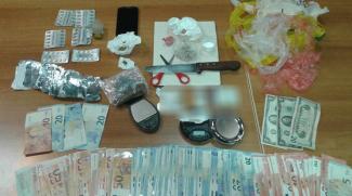 Κατά την έρευνα βρέθηκαν και κατασχέθηκαν 77 ναρκωτικά χάπια, ποσότητα χασίς και 95 ευρώ σε μετρητά.