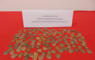 139 αρχαία χάλκινα νομίσματα της βυζαντινής περιόδου βρέθηκαν στην κατοχή ηλικιωμένου, ύστερα από έρευνα αστυνομικών του τμήματος πολιτιστικής κληρονομιάς και αρχαιοτήτων της Διεύθυνσης Ασφάλειας Θεσσαλονίκης, στην περιοχή των Μετεώρων.