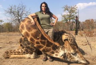 Σε δημοσίευση που έκανε πριν από λίγες μέρες ποζάρει δίπλα από μια νεκρή καμηλοπάρδαλη και γράφει: «Σκότωσα μια γερασμένη καμηλοπάρδαλη. Το συναίσθημα ήταν απίστευτο και θα το θυμάμαι πάντα. Δεν θα μπορούσα να είμαι πιο ευτυχισμένη». Για την ιστορία οι καμηλοπαρδάλεις είναι και αυτές πλέον είδος υπό εξαφάνιση.