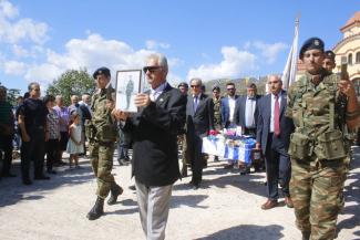 Τελέστηκε δοξολογία, επιμνημόσυνη δέηση και αποδόθηκαν τιμές από στρατιωτικό άγημα κατά την ταφή. "Αθάνατος" φώναζαν όσοι τον ακολούθησαν στην τελευταία του κατοικία.