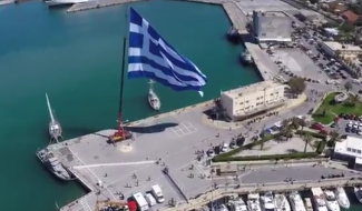 Εντυπωσιακά πλάνα με την γιγαντιαία σημαία που στήθηκε στο χώρο του Κεντρικού Λιμεναρχείου Ηρακλείου... Πρόκειται για σημαία 1.200 τ.μ