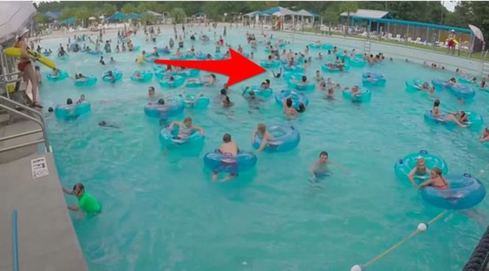 Ενα τρομακτικό βίντεο, το οποίο έχει γίνει viral, δείχνει μια τεράστια ανοιχτή πισίνα με τεχνητά κύματα όπου κολυμπούν δεκάδες άνθρωποι.