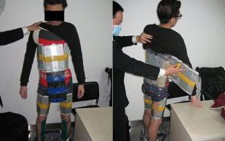Σύμφωνα με τα κινεζικά μέσα ενημέρωσης, ο άντρας πιάστηκε στο λιμάνι Futian, όταν οι τελωνειακοί διέκριναν ότι είχε δυσκολία στο περπάτημα και της στάσης του σώματος.