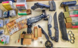 Ο συνεργός του και συνομήλικος του «τράβηξε» την προσοχή των αστυνομικών. Όχι λόγω της εντυπωσιακής σωματοδομής του, αλλά εξαιτίας του μικρού οπλοστασίου που βρέθηκε στην κατοχή του. «Τρεις χειροβομβίδες και χειροβομβίδα κρότου-λάμψης, υποπολυβόλο και γεμιστήρα με 20 φυσίγγια, πιστόλι, 480 φυσίγγια και 3 γεμιστήρες, σιδερογροθιά, 3 μαχαίρια, αλεξίσφαιρο γιλέκο». Η δικαιολογία που φέρεται να είπε περί «συλλέκτη όπλων» δεν έπεισε τους αστυνομικούς που τον παρέπεμψαν με την κατηγορία παράβασης του νόμου περί όπλων. Το 2012 είχε κατηγορηθεί για όπλα, ναρκωτικά και κατοχή αναβολικών.