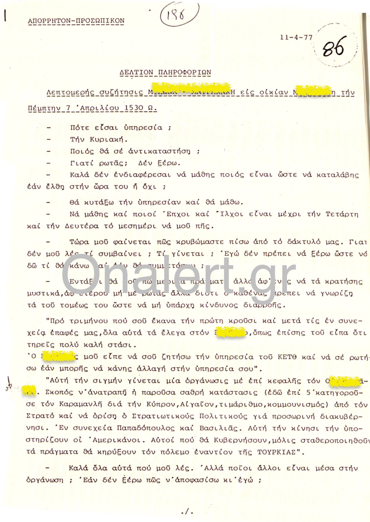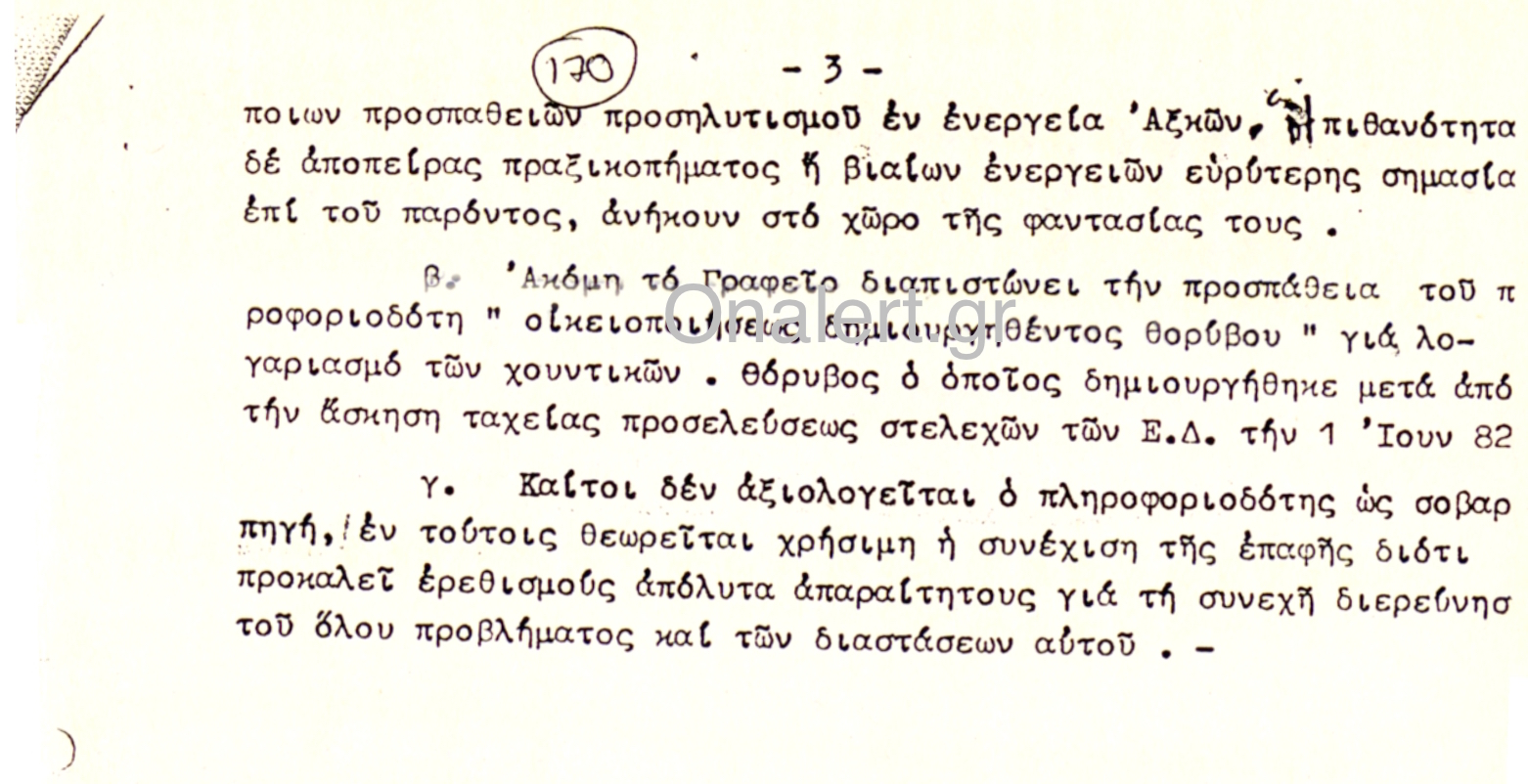 Σ΄ ένα συμφωνούσαν οι ελάχιστοι ανόητοι που παραμένει άγνωστο πως “πέρασαν” στην Σχολή Ευελπίδων: Όποιος κι ανα αναλάμβανε την “σωτηρία” της χώρας θα την οδηγούσε σε πόλεμο με την Τουρκία! Διαβάστε το έγγραφο που περιγράφει πως ένας από τους “φωστήρες” στους οποίους είχαμε εμπιστευθεί την ασφάλεια της χώρας προσπαθούσε να μυήσει αξιωματικό. Η συζήτηση γίνεται τον Απρίλιο του 1977, όταν τα "ξεφτέρια" προετοίμαζαν ...άλλο ένα κίνημα.