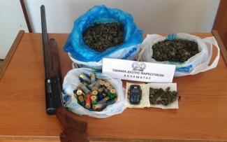 Ποσότητα κάνναβης, συνολικού βάρους 853 γραμμαρίων, κυνηγητικό όπλο, για το οποίο είχε δηλωθεί η κλοπή του στις 23 Νοεμβρίου 1991, 37 φυσίγγια και κινητό τηλέφωνο.