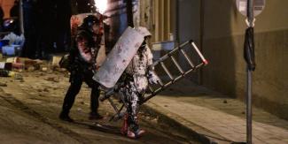 Περίπου μία ώρα μετά, εισήλθαν στο κτίριο και στις 20:30 συνέλαβαν τα πέντε άτομα (τρεις άνδρες και δύο γυναίκες, ανάμεσά τους και ένας ανήλικος) που ήταν μέσα. Οι αστυνομικοί άνοιξαν με τροχό την πόρτα του οικήματος, ενώ δέχονταν καταιγισμό από αντικείμενα (τσιμεντόλιθους, ξύλα κ.λπ.) και μπογιές από τους αντιεξουσιαστές. Λίγο αργότερα, ανάλογη επιχείρηση στήθηκε και στο κτίριο της οδού Παναιτωλίου, όπου η εκκένωση από την Αστυνομία ολοκληρώθηκε στις 21:30 το βράδυ (η συνολική διπλή επιχείρηση διήρκεσε 2,5 ώρες), ενώ συνελήφθησαν οκτώ άτομα (5 γυναίκες και 3 άνδρες).