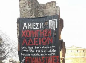 Γιγαντοπανό ανέβασαν χθες, Πέμπτη, άτομα του ευρύτερου αντιεξουσιαστικού χώρου στην Καμάρα.