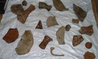 Σε έρευνα που του έγινε βρέθηκαν και κατασχέθηκαν τέσσερα θραύσματα, τμήματα αρχαίων αμφορέων, μια Βυζαντινή σφραγίδα, ένα πήλινο αντικείμενο και ενα κυνηγετικό όπλο.