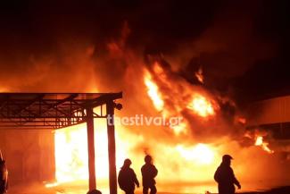 Μάχη με τη φωτιά δίνουν οι πυροσβέστες στην περιοχή της Σίνδου, στη Θεσσαλονίκη, καθώς στις φλόγες έχει παραδοθεί αντιπροσωπεία γεωργικών μηχανημάτων.