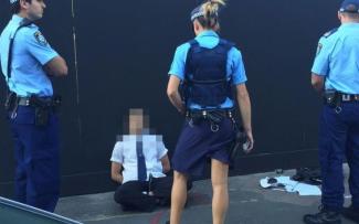 Ο όμιλος μέσων ενημέρωσης Australian Broadcasting Corporation μετέδωσε εικόνες που δείχνουν τον μαθητή του Λυκείου Arthur Phillip, στο δυτικό Σίδνεϊ, καθισμένο στο έδαφος, με τα χέρια δεμένα με χειροπέδες πίσω στην πλάτη και τα πράγματά του αδειασμένα στο πεζοδρόμιο.