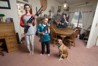 Οι Avery, Miles, Gregg, και Theresa μαζί με το σκυλί τους Ginny. Αριζόνα. Η Theresa σημειώνει: «Πριν χρόνια, είδα έναν διαρρήκτη ο οποίος μιλώντας στην τηλεόραση είπε ότι ο μεγαλύτερος του φόβος είναι ένας ιδιοκτήτης σπιτιού που έχει στην κατοχή του όπλο και πως αν τον σημαδέψει με αυτό, θα παραδινόταν. Είπε επίσης, ότι αν ήξερε ότι ένα σπίτι έχει όπλα, δεν θα επέλεγε να το κλέψει»