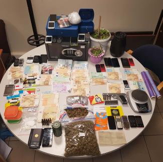Στο πλαίσιο συντονισμένης επιχείρησης που πραγματοποιήθηκε χθες (17-03-2017) από αστυνομικούς της ανωτέρω Υπηρεσίας, με τη συνδρομή αστυνομικών του Τμήματος Εκβιαστών της Διεύθυνσης Ασφάλειας Θεσσαλονίκης, του Τμήματος Ασφαλείας Σερρών, της Ομάδας Δίωξης Ναρκωτικών του Τμήματος Ασφαλείας Δράμας και ειδικά εκπαιδευμένου σκύλου ανίχνευσης ναρκωτικών ουσιών του Β’ Τελωνείου Θεσσαλονίκης, συνελήφθησαν συνολικά δέκα (10) ημεδαποί-μέλη του κυκλώματος, μεταξύ των οποίων και οι δύο (2) «εγκέφαλοι» της οργάνωσης ηλικίας 48 και 41 ετών, σε βάρος των οποίων, καθώς και σε βάρος δύο (2) ακόμη συνεργών τους που αναζητούνται, σχηματίσθηκε δικογραφία, κατά περίσταση, για συγκρότηση και ένταξη σε εγκληματική οργάνωση και παραβάσεις των Νόμων περί εξαρτησιογόνων ουσιών και περί όπλων.