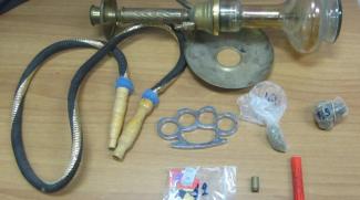 Στο χώρο βρέθηκαν ακόμη μια σιδερογροθιά, ένας κάλυκας φυσιγγίου διαμετρήματος 9 mm και μια κροτίδα, με αποτέλεσμα η εισαγγελέας Πρωτοδικών Ροδόπης να του ασκήσει δίωξη και για παραβάσεις του νόμου περί όπλων και περί βεγγαλικών, εκτός από αυτήν για παράβαση της νομοθεσίας περί ναρκωτικών.