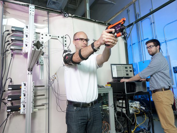 Στο Εργαστήριο Ερευνών του Αμερικανικού Στρατού, ο Dan Baechle, μηχανολόγος μηχανικός, δοκιμάζει το MAXFAS, ένα μηχανοτρονικό εξωσκελετικό χέρι, το οποίο έχει σχεδιαστεί έτσι ώστε να μπορεί να χρησιμοποιηθεί για να εκπαιδεύσει νέους στρατιώτες για να μάθουν γρηγορότερα τη σκοποβολή.