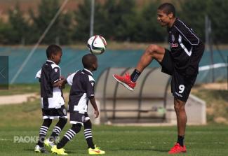 Προσφυγόπουλα, παιδιά οικογενειών που έφυγαν από τα σπίτια τους για μια καλύτερη ζωή, βρέθηκαν την Δευτέρα στο προπονητικό κέντρο της Νέας Μεσημβρίας. Ετσι 12 μικρά παιδιά έκαναν προπόνηση μαζί με τους ποδοσφαιριστές του ΠΑΟΚ, γέλασαν, πέρασαν μαζί τους λίγη ώρα ευχάριστα, ξεχνώντας για λίγο τα πολλά και σοβαρά προβλήματα που βιώνουν καθημερινά.
