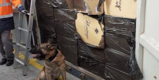 Χρησιμοποιώντας το σύστημα X-RAY και τον ειδικό σκύλο ανιχνευτή καπνικών προϊόντων, με το όνομα Kal, διαπίστωσαν ότι το εμπορευματοκιβώτιο περιείχε 10,5 εκατ. τσιγάρα. Είχε φορτωθεί από χώρα της Μέσης Ανατολής και είχε προορισμό λιμάνι της Ευρώπης.