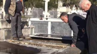 Σύμφωνα με τα όσα διαπίστωσε ο ίδιος, φαίνεται να έχουν γίνει σκαπτικες εργασίες εντός του μνήματος και να έχει αφαιρεθεί η σορός του στρατηγού. Μάλιστα σημείωσε ότι και επιχειρήθηκε ανθρώπινη παρέμβαση και στη σορό της συζύγου του χωρίς ωστόσο να λείπει κάτι.