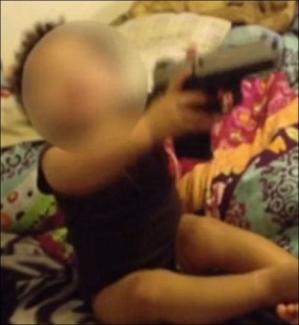 Το βρέφος δεν διστάζει να βάλει το όπλο στο στόμα του μετά από παρότρυνση του πατέρα του, Μάικλ Μπαρνς, ενώ ακούγεται και μία γυναικεία φωνή, που εκτιμάται ότι είναι της μητέρας, της 22χρονης Τόνι Γουίλσον.