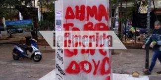 Αγνωστοι έγραψαν μάλιστα ένα σοκαριστικό μήνυμα πάνω στο άγαλμα. Με κόκκινη μπογιά έγραψαν χαρακτηριστικά «Δήμαρχε, το βρώμικο '89 έγινε η μισή δουλειά». Δηλαδή, την χρονολογία που δολοφονήθηκε ο πατέρας του Παύλος Μπακογιάννης από την 17 Νοέμβρη.