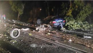 Σφοδρή πρόσκρουση πάνω σε δέντρο στην λεωφόρο Σούδας. Ακαριαίος θάνατος του οδηγού. Σε δεκάδες μέτρα σκορπίστηκαν τα συντρίμμια