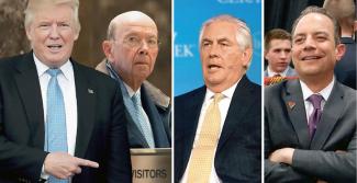 Υπό αυτό το πρίσμα θα έχει μεγάλο ενδιαφέρον να δούμε πώς πρόκειται να σταθούν απέναντι στην Ελλάδα τρεις κορυφαίοι συνεργάτες του Ντόναλντ Τραμπ: ο 79χρονος υπουργός Εμπορίου Ουίλμπορ Ρος, ο 64χρονος υπουργός Εξωτερικών Ρεξ Τίλερσον και ο 44χρονος προσωπάρχης του Λευκού Οίκου, Ράινς Πρίμπους.