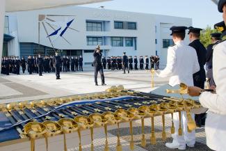 Τα ξίφη στους νέους Ανθυποσμηναγούς επέδωσε η Αυτού Εξοχότης ο Πρόεδρος της Δημοκρατίας, κ. Προκόπης Παυλόπουλος, παρουσία του Υπουργού Εθνικής Άμυνας, κ. Πάνου Καμμένου, του Αρχηγού του Γενικού Επιτελείου Εθνικής Άμυνας (ΓΕΕΘΑ), Ναύαρχου Ευάγγελου Αποστολάκη ΠΝ και του Αρχηγού του Γενικού Επιτελείου Αεροπορίας (ΓΕΑ), Αντιπτέραρχου (Ι) Χρήστου Βαΐτση.