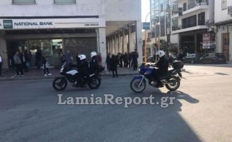 Αστυνομικοί έκαναν έντονη την παρουσία τους τόσο στο κέντρο της Λαμίας στην πλατεία Πάρκου, όσο και στα περιφερειακά υποκαταστήματα που παρουσιάζεται ανάλογος συνωστισμός.