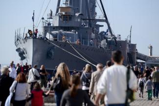 Ουρές χιλιομέτρων σχηματίστηκαν στη Θεσσαλονίκη από μικρούς και μεγάλους που πήγαν να δουν το ιστορικό θωρηκτό «Γ. Αβέρωφ», το οποίο έχει καταπλεύσει στο λιμάνι στο πλαίσιο των εορταστικών εκδηλώσεων της 26ης και 28ης Οκτωβρίου.