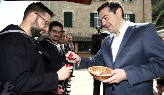 Ο πρωθυπουργός παρακολούθησε το βράδυ του Μεγάλου Σαββάτου την Αναστάσιμη λειτουργία στον ιερό ναό της Αγίας Παρασκευής, ενώ σήμερα επισκέφθηκε τον Ναυτικό Σταθμό της Κέρκυρας και μοίρασε… άδειες σε όσους ναύτες του έσπασαν το αυγό!