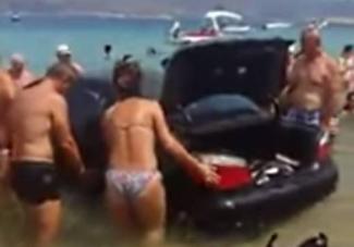 Μετά από μια "τρελή" πορεία ανάμεσα σε λουόμενους, παρέσυρε ομπρέλες και ξαπλώστρες στο πέρασμα του, και τελικά κατέληξε στα νερά!