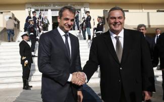 Ο κ. Μητσοτάκης, ο οποίος συνοδευόταν από τον νέο Τομεάρχη Αμύνης και Αντιπρόεδρο του κόμματος Άδωνι Γεωργιάδη, έγινε δεκτός από τον Πάνο Καμμένο.