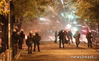 Νεαροί πετούσαν βόμβες μολότοφ, πέτρες, κομμάτια από μάρμαρο και διάφορα άλλα αντικείμενα, προς τις αστυνομικές δυνάμεις, οι οποίες προσπαθούσαν να τους απωθήσουν. Παράλληλα, επεισόδια σημειώνονταν και στην οδό Τοσίτσα, όπου το σκηνικό ήταν ανάλογο.