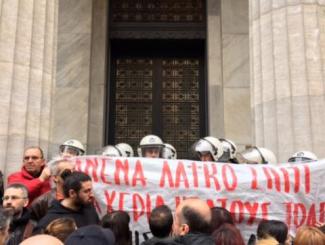Πιστοί στο ραντεβού που δίνουν κάθε Τετάρτη στα δικαστήρια της Θεσσαλονίκης ήταν και σήμερα δεκάδες μέλη συλλογικοτήτων της πόλης που εναντιώνονται στους πλειστηριασμούς.