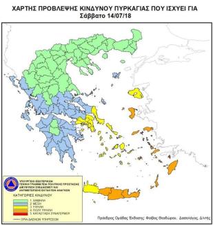 Πολύ υψηλός είναι σήμερα ο κίνδυνος πυρκαγιάς σε τρεις περιφέρειες της χώρας. Σύμφωνα με τον Χάρτη Πρόβλεψης Κινδύνου Πυρκαγιάς που εκδίδει η Γενική Γραμματεία Πολιτικής Προστασίας, πρόκειται για τις: