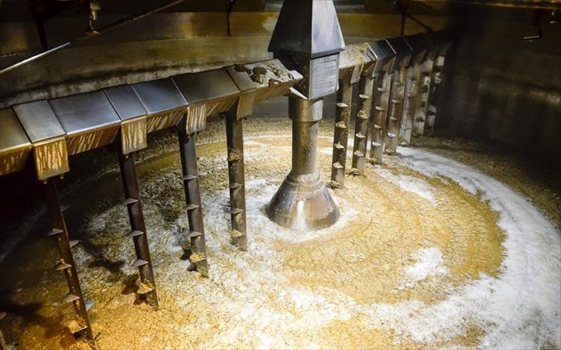 Στη συνέχεια, η αλεσμένη βύνη μεταφέρεται μέσω ενός κοχλία στο δοχείο εκχύλισης (Mashtun), όπου αναμειγνύεται με νερό ελεγχόμενης θερμοκρασίας, προκειμένου να μετατραπεί το άμυλο σε ζυμώσιμα σάκχαρα. Κατά τη διάρκεια της εκχύλισης, αυξάνουμε σταδιακά τη θερμοκρασία, έτσι ώστε να δράσουν διαφορετικού τύπου ένζυμα.