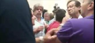 Η παρουσία ωστόσο του κ. Γιαννίδη στην αίθουσα πυροδότησε την έκρηξη πολιτών που ξεσηκώθηκαν και άρχισαν να του επιτίθενται φραστικά με βαρείς χαρακτηρισμούς όπως "προδότη". Στο σημείο μάλιστα, έφτασε και αστυνομία για να αποκλιμακωθεί η ένταση.