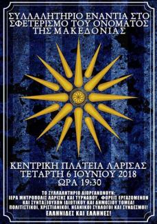 Η 10μελής Συντονιστική Επιτροπή που συγκροτήθηκε και ορίσθηκε υπεύθυνη για τη διοργάνωση του συλλαλητηρίου για τη Μακεδονία, το οποίο θα πραγματοποιηθεί την Τετάρτη 6 Ιουνίου και ώρα 19:30 στην κεντρική πλατεία της Λάρισας ξεκίνησε άμεσα τις επαφές ώστε στο ελάχιστο χρόνο που απομένει να φέρει το καλύτερο δυνατό αποτέλεσμα. Στο πλαίσιο αυτό επισκέφθηκε τον Δήμαρχο Λαρισαίων, ο οποίος και έδωσε εντολή για διάθεση της κεντρικής πλατείας και της ηλεκτρολογικής υποστήριξης και τον Περιφερειάρχη Θεσσαλίας, ο οποίος δήλωσε αρωγός και συμπαραστάτης της όλης προσπάθειας.