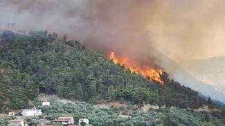 Στο σημείο επιχειρούν 18 πυροσβέστες με 9 οχήματα,16 πεζοπόρο τμήμα, 2 αεροσκάφη και 1 ελικόπτερο.