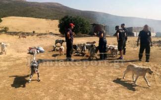 Δεκαοκτώ πυροσβέστες με επικεφαλής τον Διοικητή της Υπηρεσίας Γιώργο Οικονόμου, κατόρθωσαν να σώσουν περί τα 60 σκυλιά, όλα τους κυνηγόσκυλα ράτσας, κάποια από αυτά μάλιστα δύο φορές καθώς επέστρεφαν στα κλουβιά όπου ήταν τα μικρά τους. Συγχρόνως οι πυροσβέστες έδιναν μάχη με το χρόνο για να προλάβουν πριν η πυρκαγιά ξεφύγει στη χαράδρα και κάψει ότι βρει στο πέρασμά της. Χαρακτηριστικά στο σημείο κλήθηκε και πεζοπόρο τμήμα προκειμένου να καθαρίσει τις διάσπαρτες μικροεστίες.