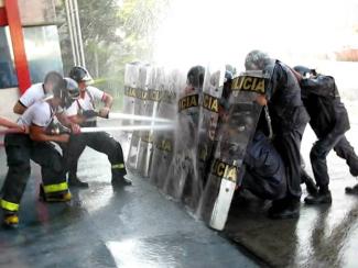 Το βίντεο που θα παρακολουθήσετε με την εμφύλια "μάχη" μεταξύ πυροσβεστών και ΜΑΤ, αναρτήθηκε στη σελίδα που διατηρεί στο facebook η Ενωμένη Θεσσαλονίκη. Πρόκειται για μια ... αναμέτρηση μεταξύ αστυνομικών των ΜΑΤ και πυροσβεστών της