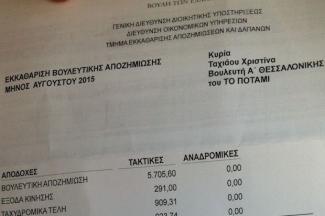 Η βουλευτική μου αποζημίωση ήταν –καθαρά- 5.501,74 ευρώ.Σε αυτήν συμπεριλαμβάνονταν όλα τα επιδόματα, γραφείου, έξοδα κίνησης κλπ. Σε όλο το διάστημα της θητείας μου, δεν πρέπει να πήρα περισσότερα από 3.000 ευρώ από επιτροπές, κάθε συνεδρίαση της οποίας αποζημιώνεται με 75 ευρώ.